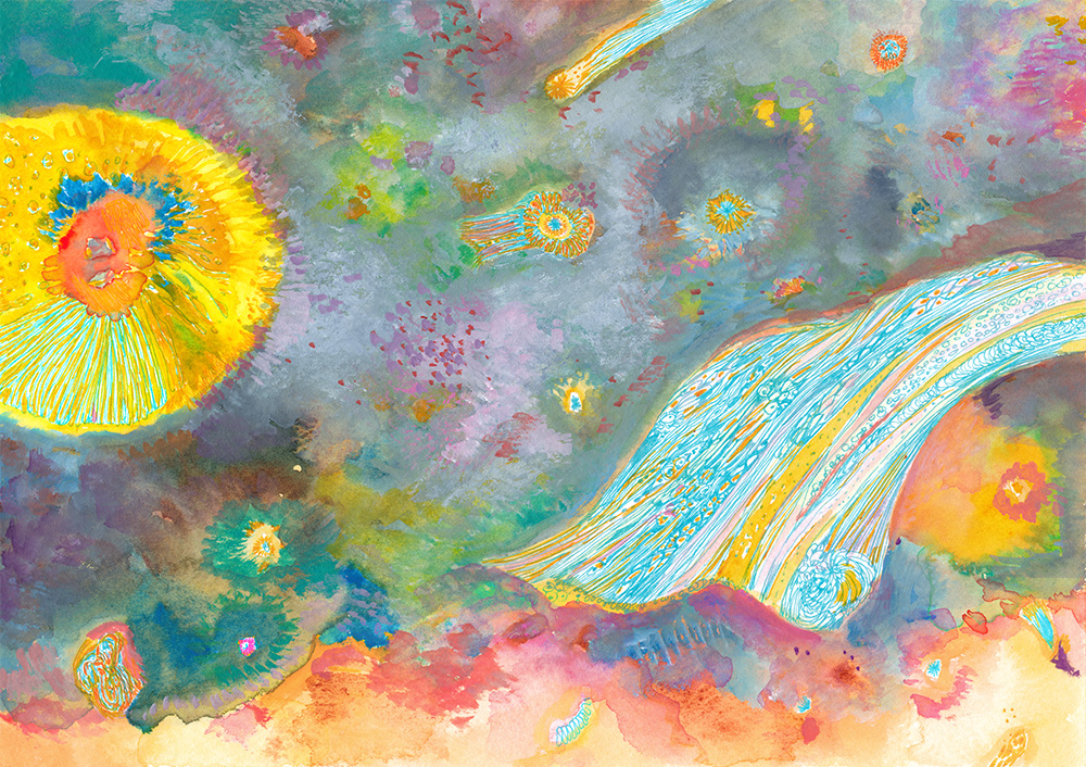 The Night and The Blanket [#SS18DW018] 2018, Watercolor and Pen on Acid-free Paper, 7.5 x 10.5 in. / 19 x 26.7 cm