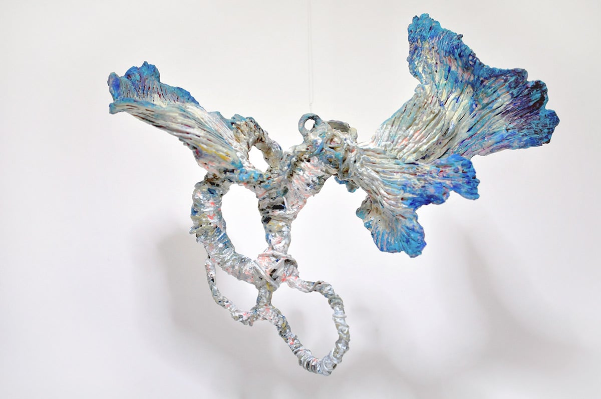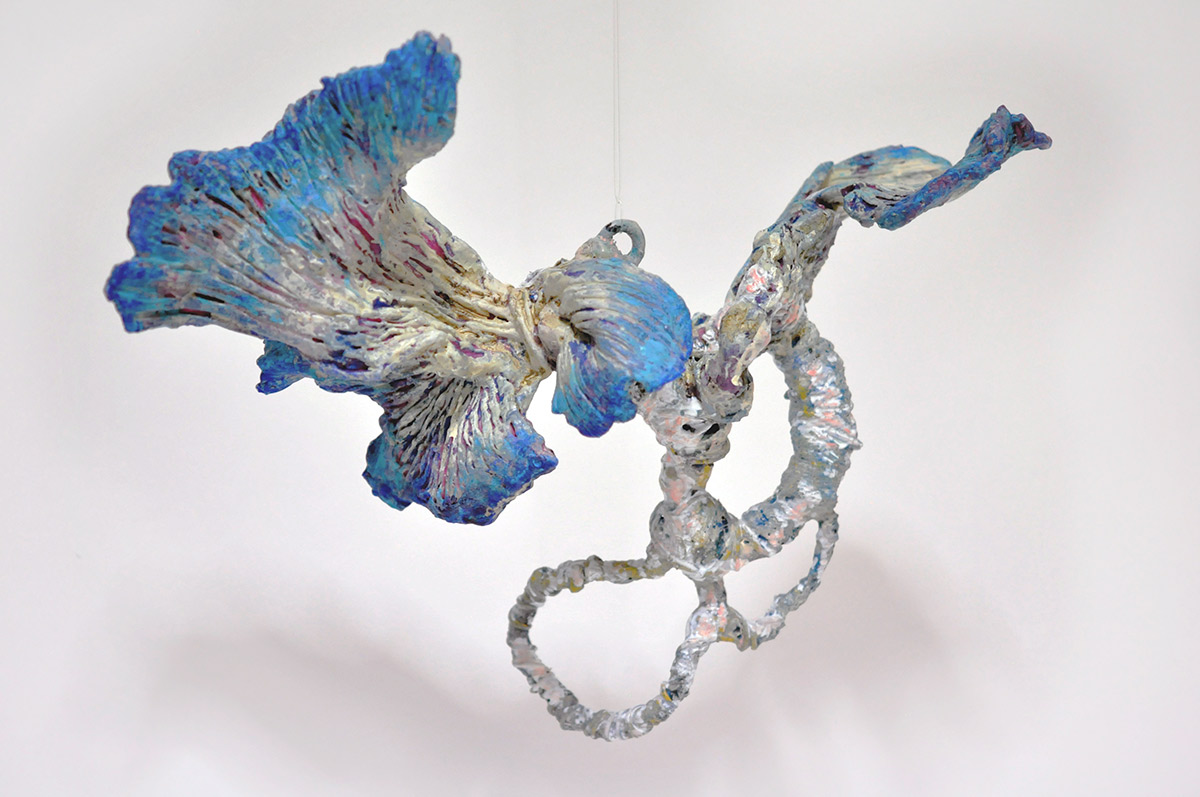 The sculpture is designed to be hanged.