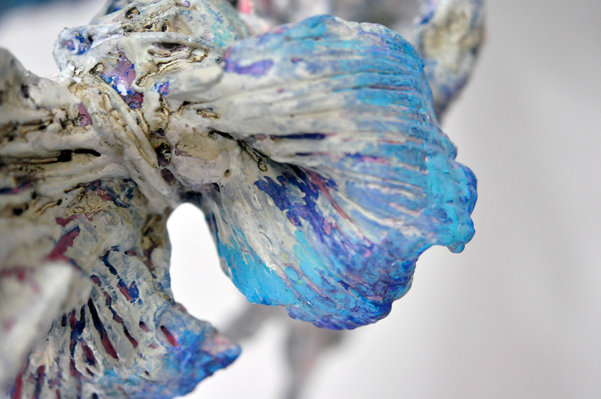 Bird [#SS18SC006] 2018 Oil, Glue, and Steel Wire on Stone Powder Clay, 13.4 x 16.1 x 6.1 in. / 34 x 41 x 15.5 cm