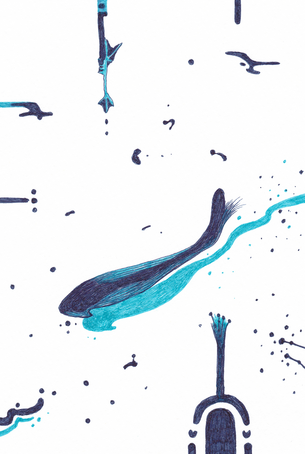 Fountain at night [#SS20DW003] 2020, Pen on Acid-free Paper, 5.8 x 3.9 in. / 148 x 100 mm