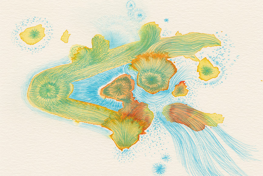 Singing along with the spring wind, 2016, Watercolor and Pen on Acid-free Paper, 3.9 x 5.8 in. / 100 x 148 mm [#SS16DW014]