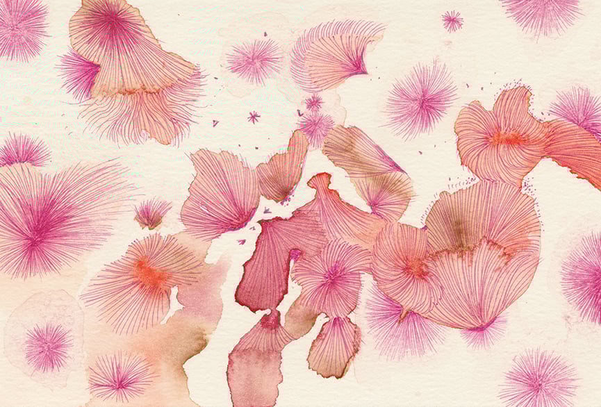 Plum Trees, 2016, Watercolor and Pen on Acid-free Paper, 3.9 x 5.8 in. / 100 x 148 mm [#SS16DW017]
