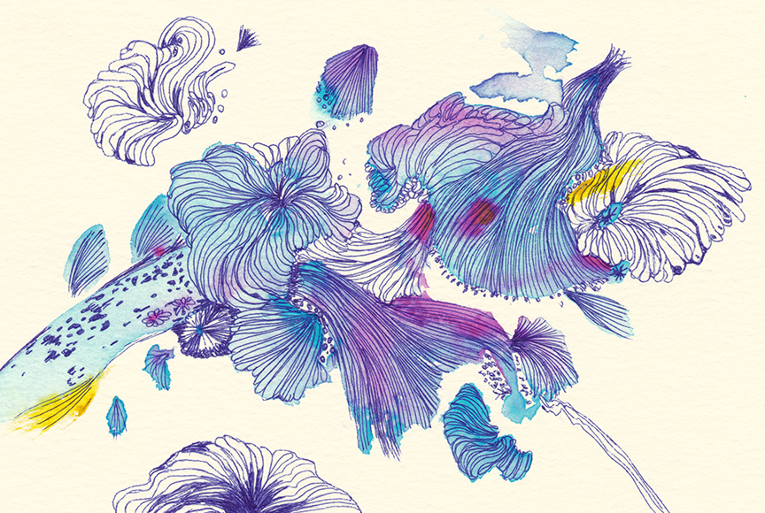 Splash, 2018, Watercolor and Pen on Acid-free Paper, 3.9 x 5.8 in. / 100 x 148 mm [#SS18DW007]