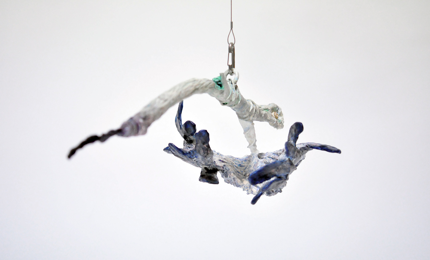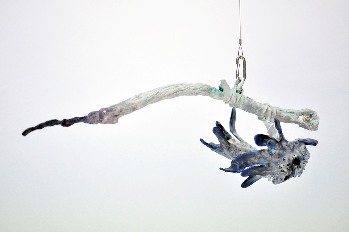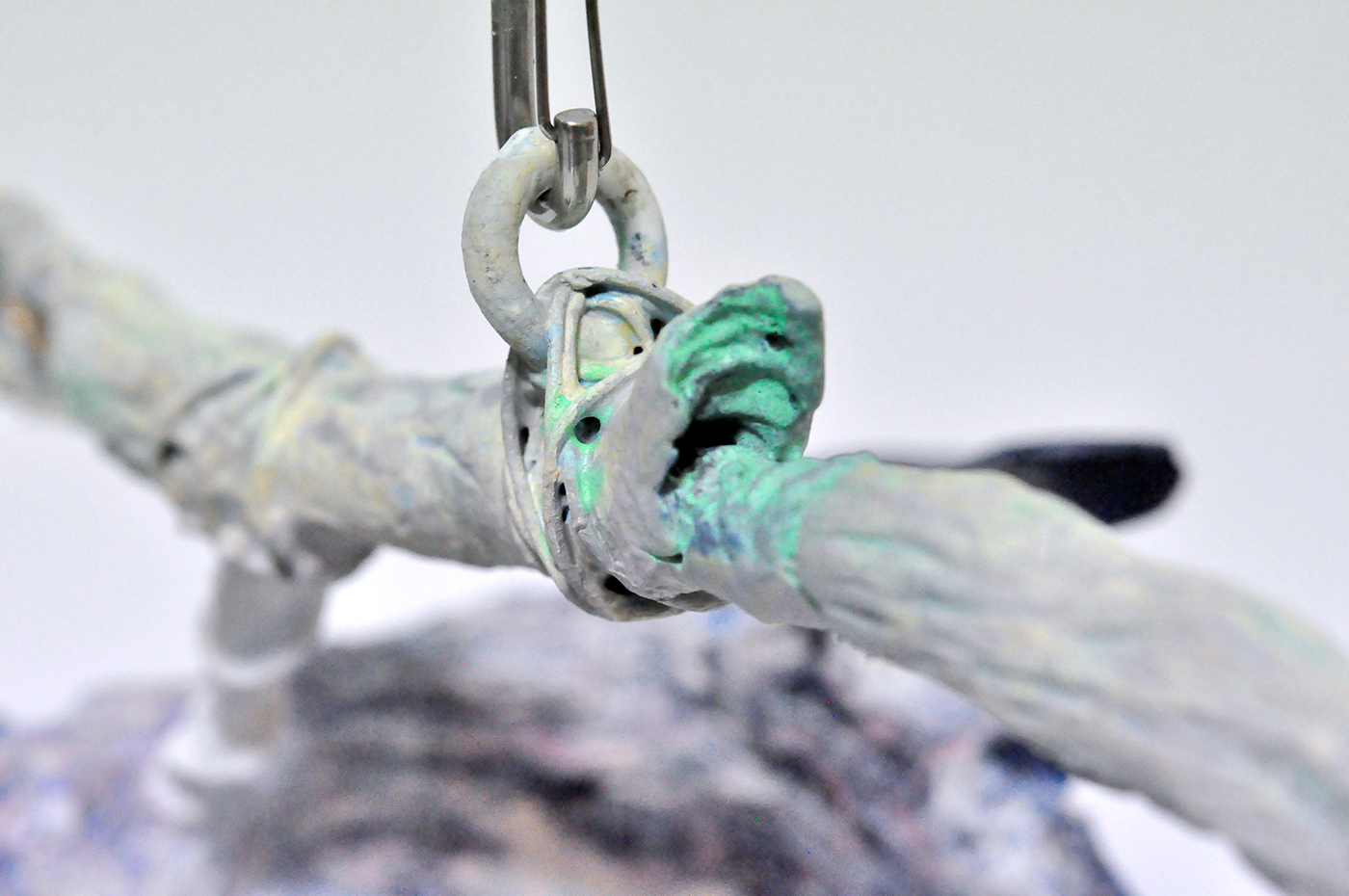 Bird [#SS20SC003] 2020, Oil, Glue, an Acrylic Bead, Hemp String, and Steel Wire on Stone Powder Clay and Polymer Clay, 6.8 x 18.5 x 9.5 in. / 17.5 x 47 x 24 cm