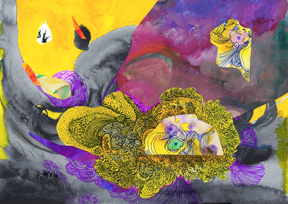 Before dark [#SS21DW003] 2021, Paper collage, Pen and Watercolor on Acid-free Paper, 7.5 x 10.5 in. / 19 x 26.7 cm