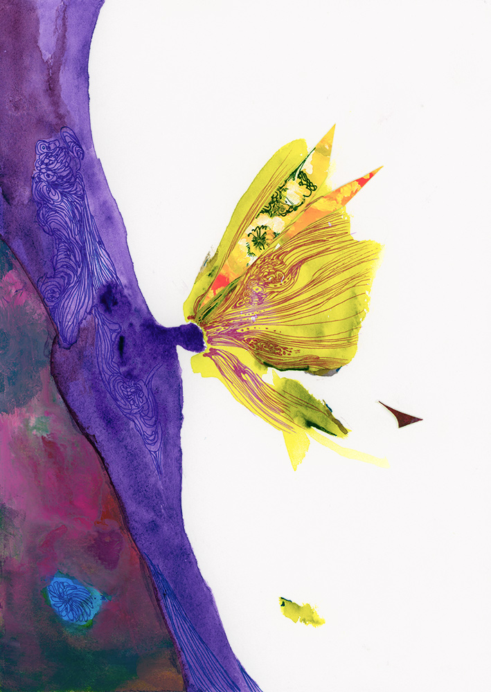 Butterfly [#SS21DW005] 2021, Paper collage, Pen and Watercolor on Acid-free Paper, 10.5 x 7.5 in. / 26.7 x 19 cm