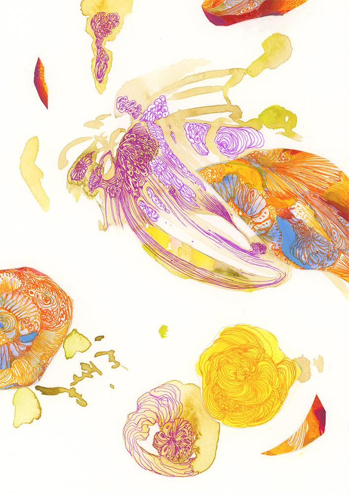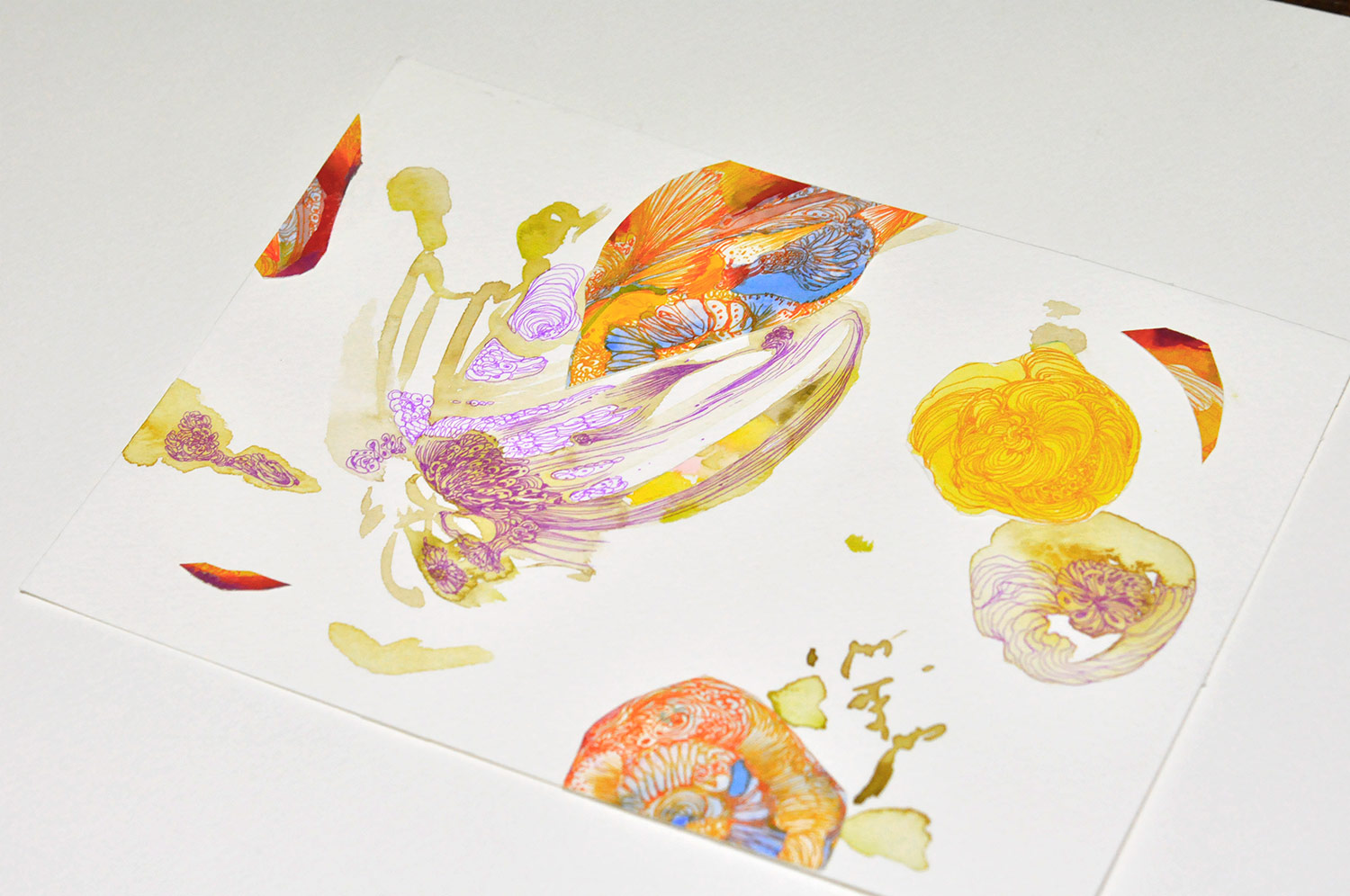 Deep Ocean [#SS21DW014] 2021, Paper collage, Pen and Watercolor on Acid-free Paper, 10.5 x 7.5 in. / 26.7 x 19 cm
