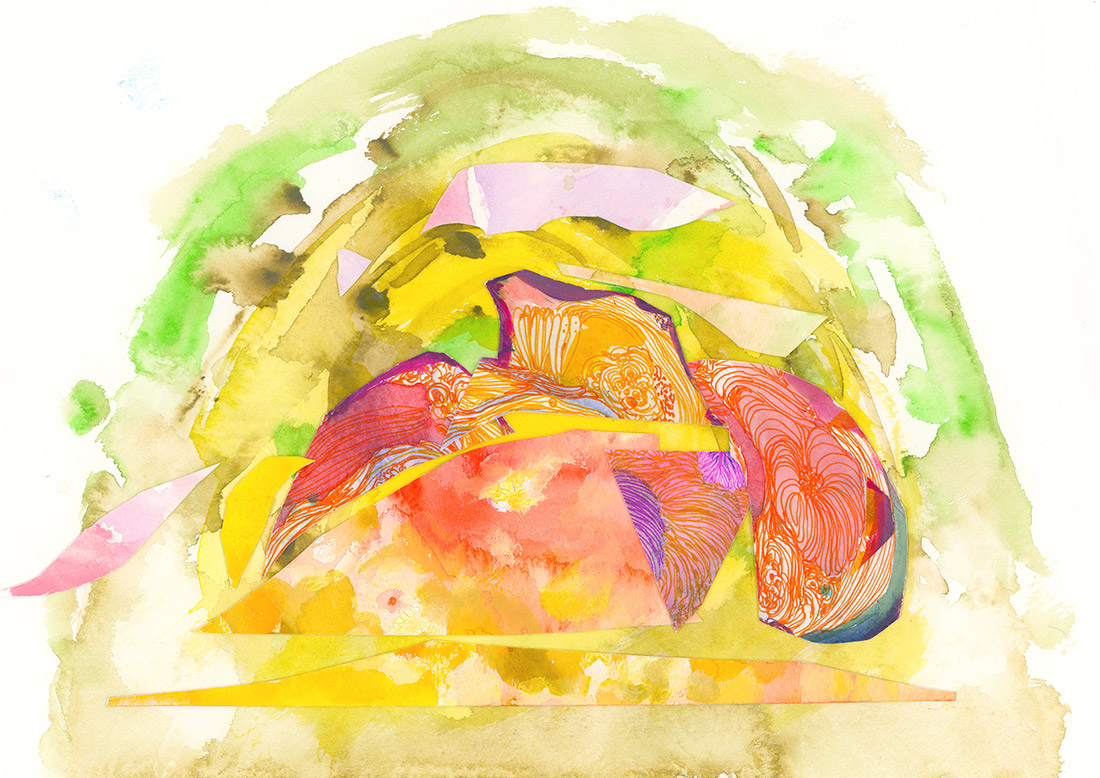 Kotatsu [#SS22DW007] 2022, Paper collage, Pen and Watercolor on Acid-free Paper, 7.5 x 10.5 in. / 19 x 26.7 cm