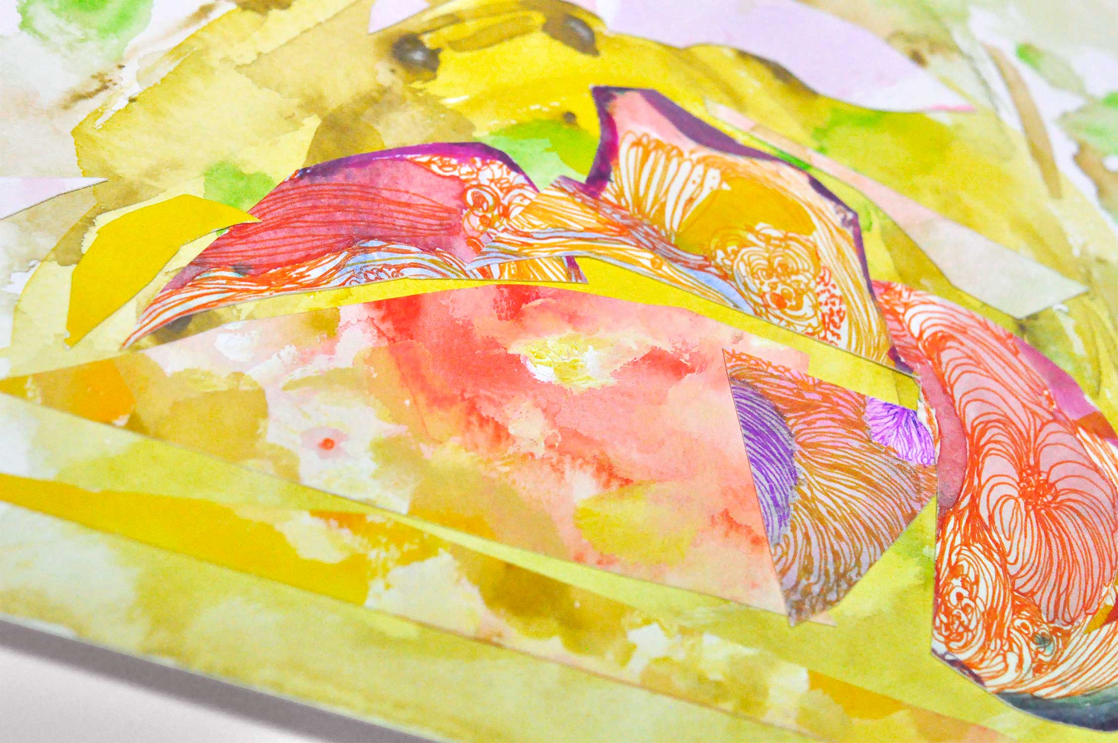 Unframed Original Art - Kotatsu [#SS22DW007] 2022, Paper collage, Pen & Watercolor