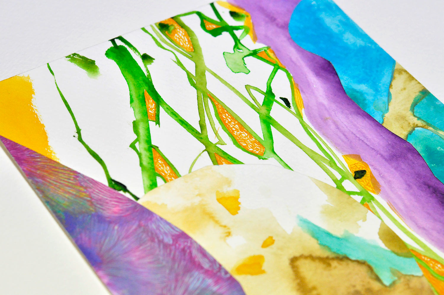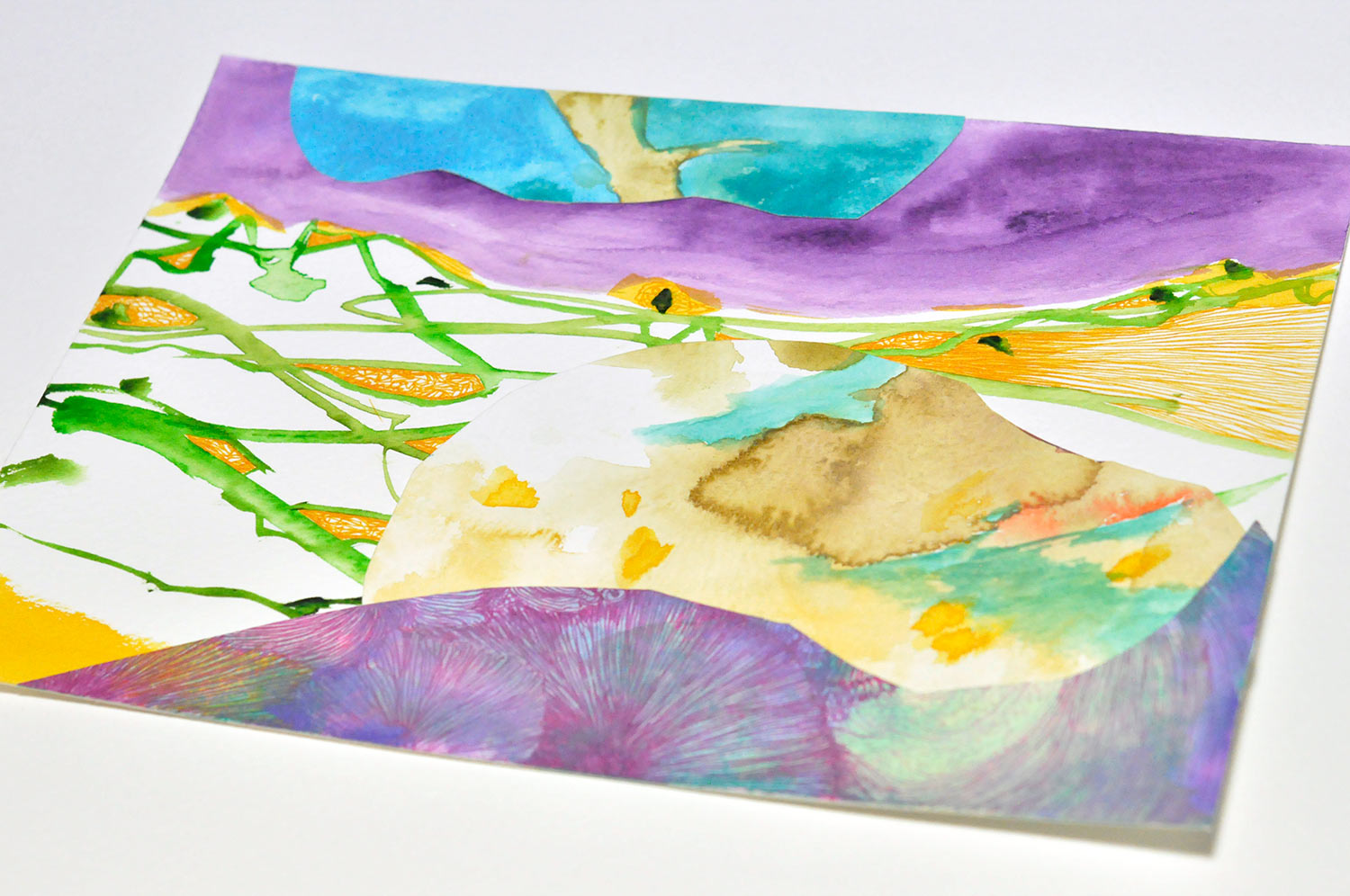 Unframed Original Art - River [#SS22DW010] 2022, Paper collage, Pen & Watercolor