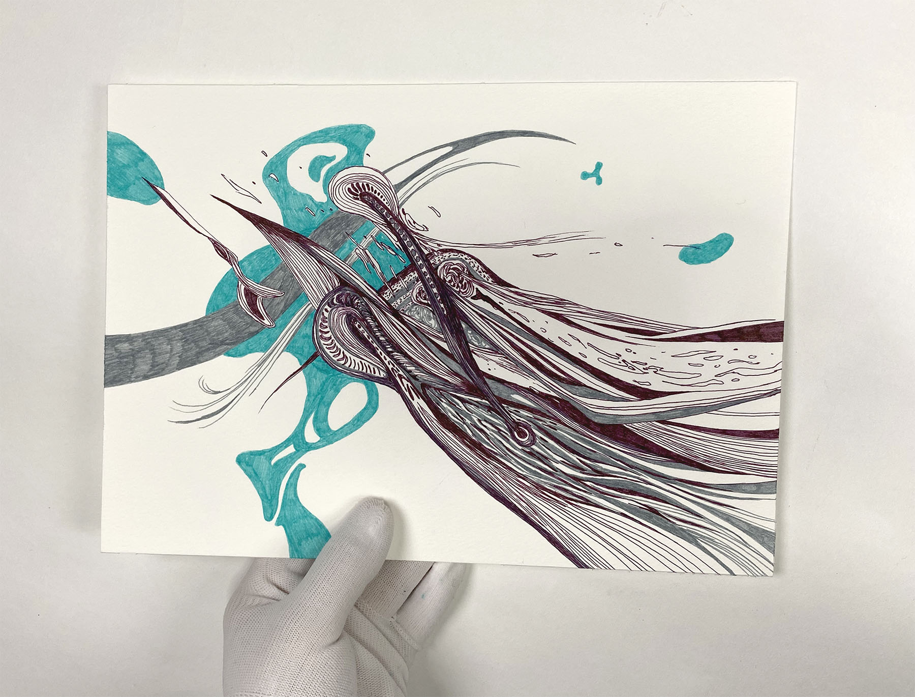 Unframed Original Art - A Shadow In The Wind [#SS22DW015] 2022, Pen on Paper