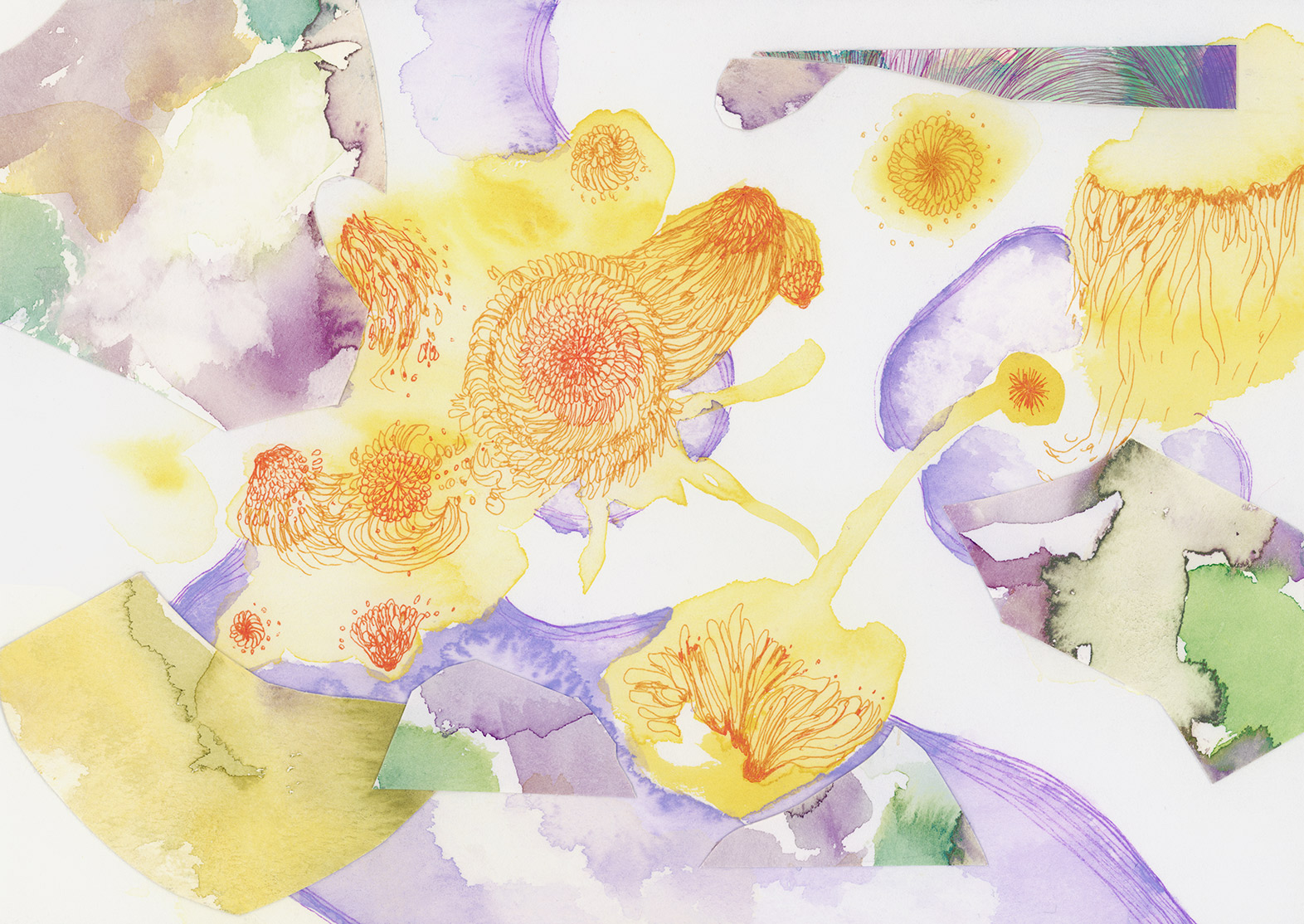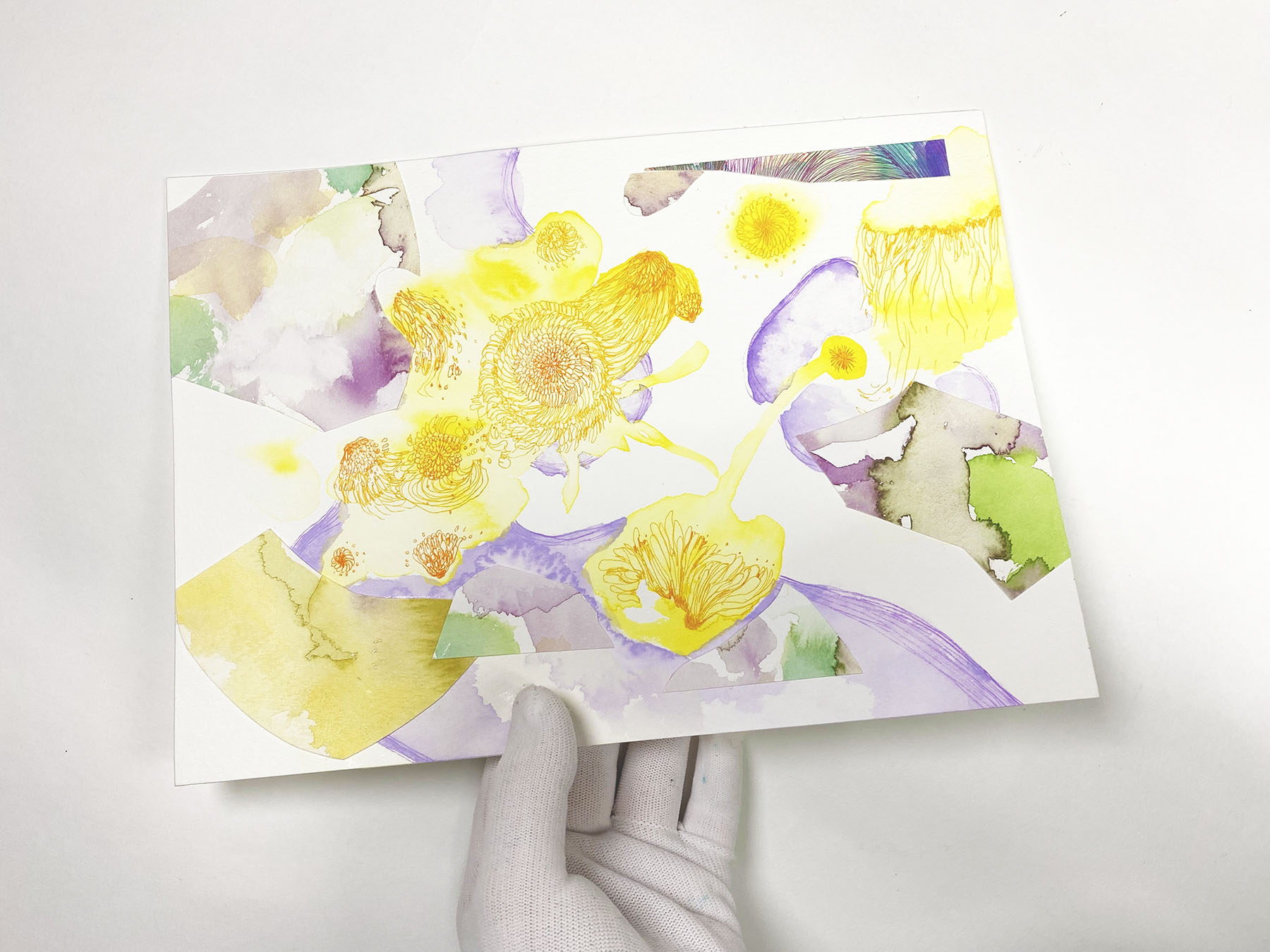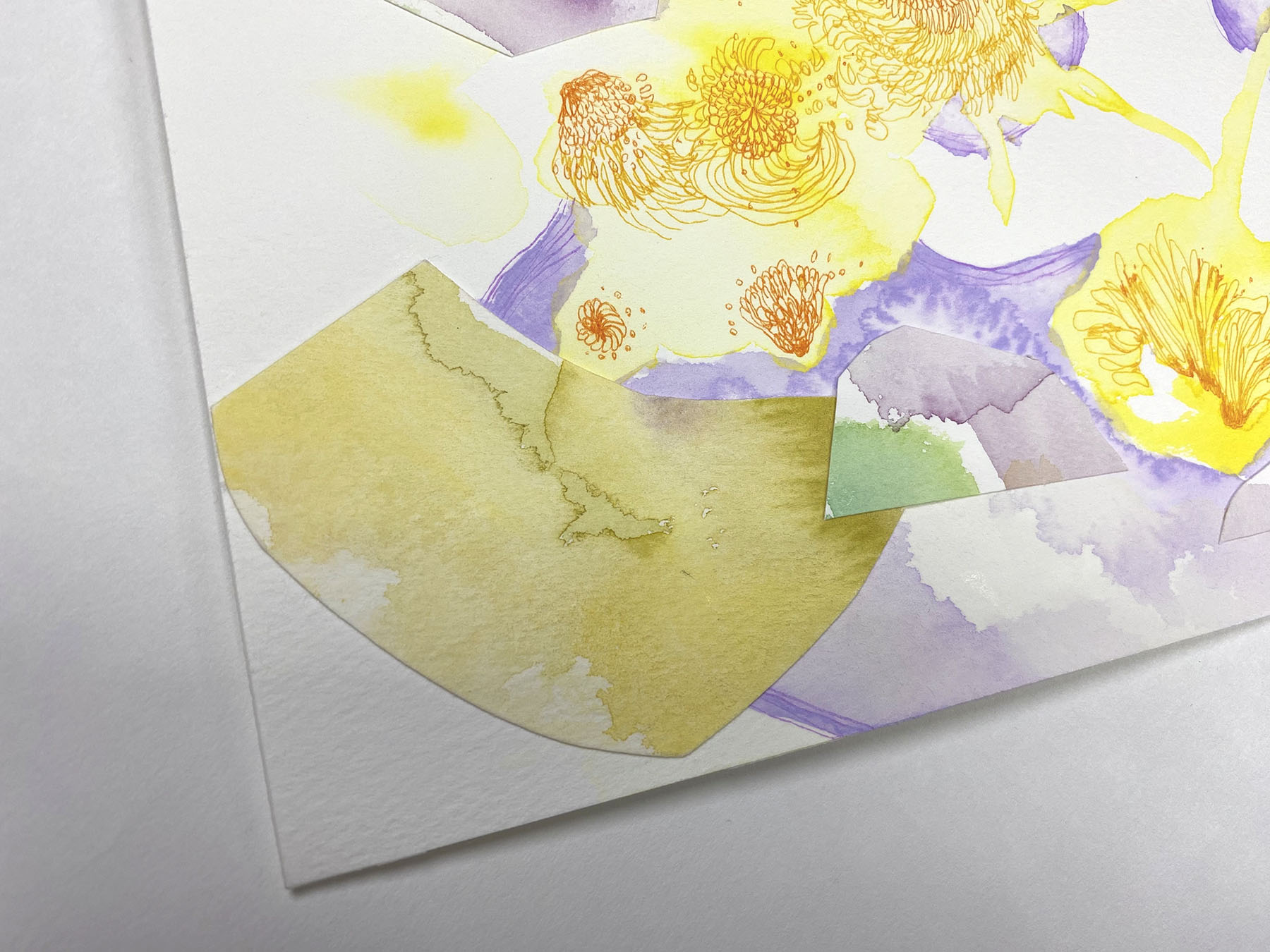 Partly Cloudy, Partly Sunny [#SS22DW016] 2022, Paper collage, Pen and Watercolor on Acid-free Paper, 7.5 x 10.5 in. / 19 x 26.7 cm