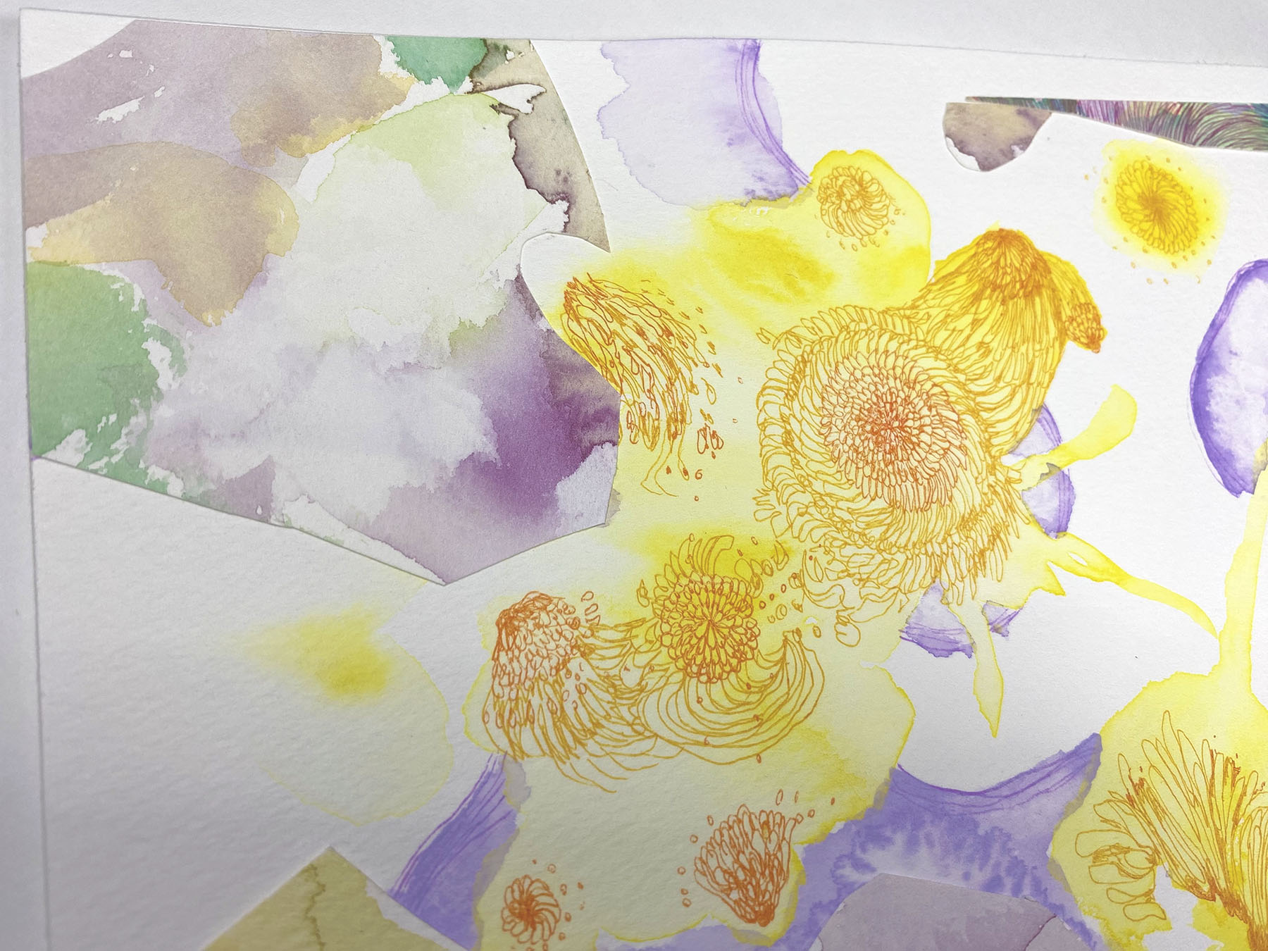 Unframed Original Art - Partly Cloudy, Partly Sunny [#SS22DW016] 2022, Paper collage, Pen & Watercolor