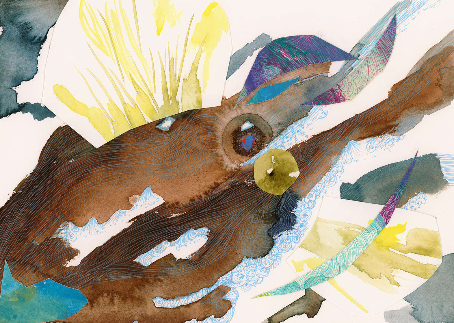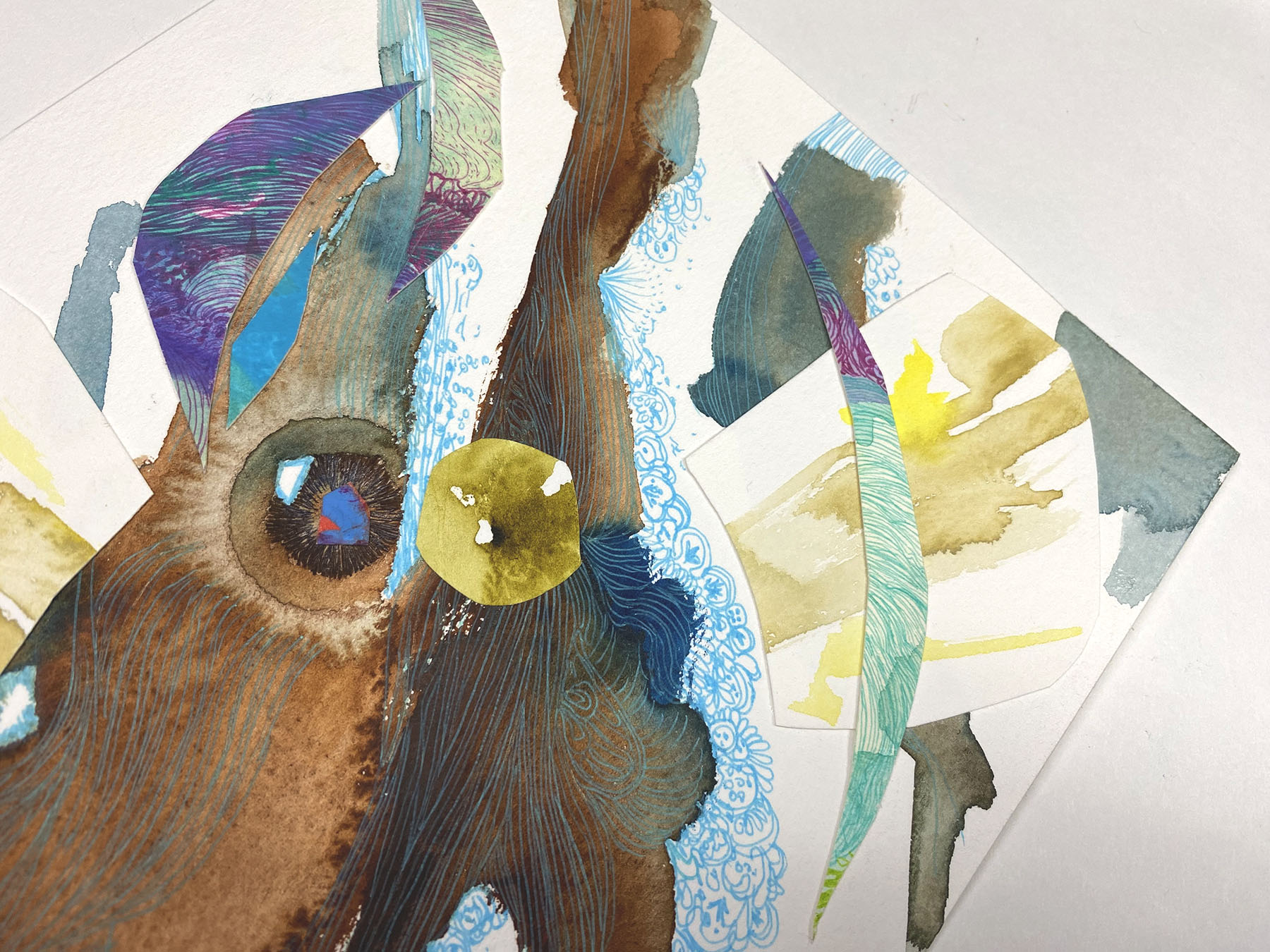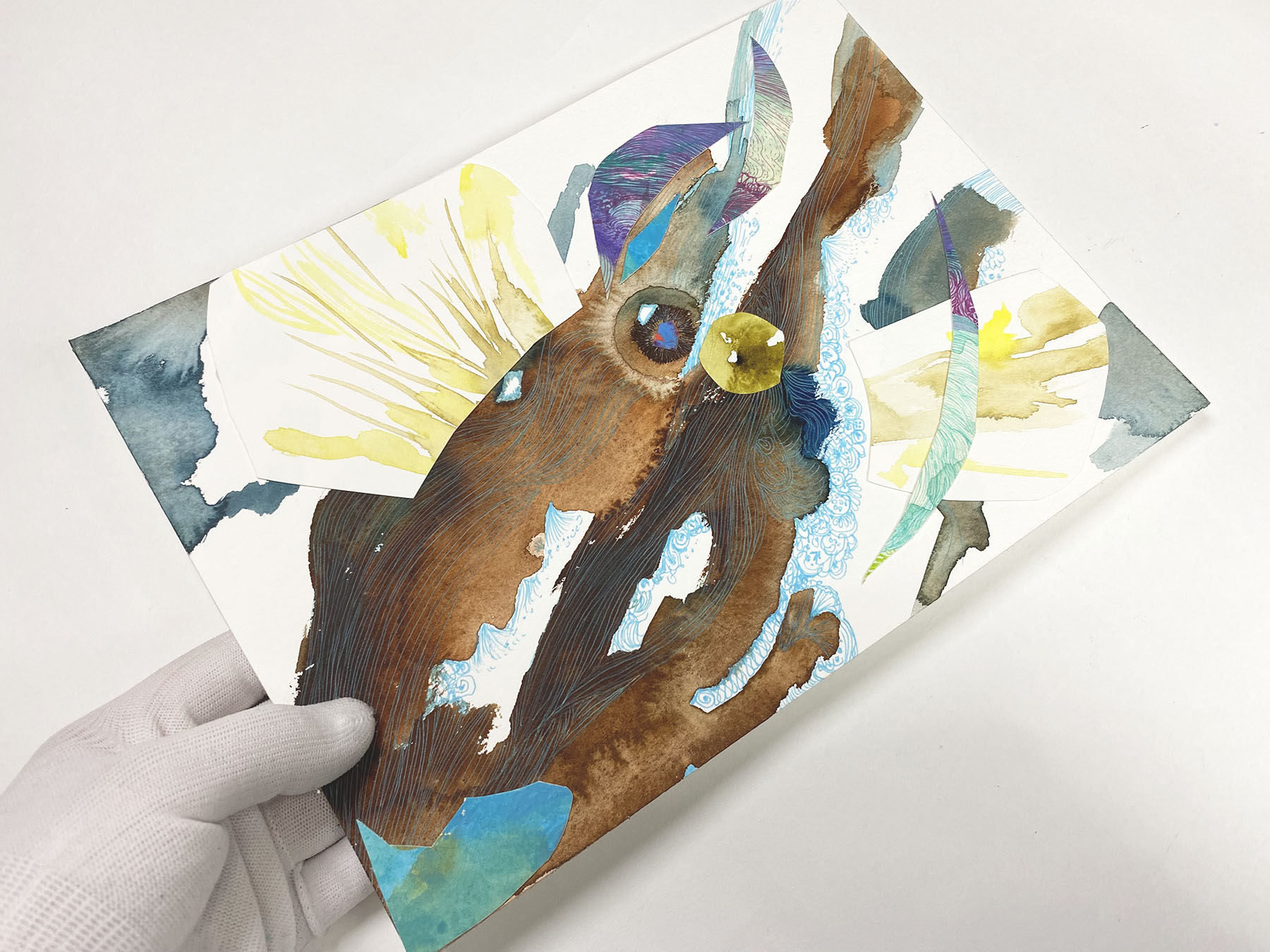Fish [#SS22DW018] 2022, Paper collage, Pen and Watercolor on Acid-free Paper, 7.5 x 10.5 in. / 19 x 26.7 cm