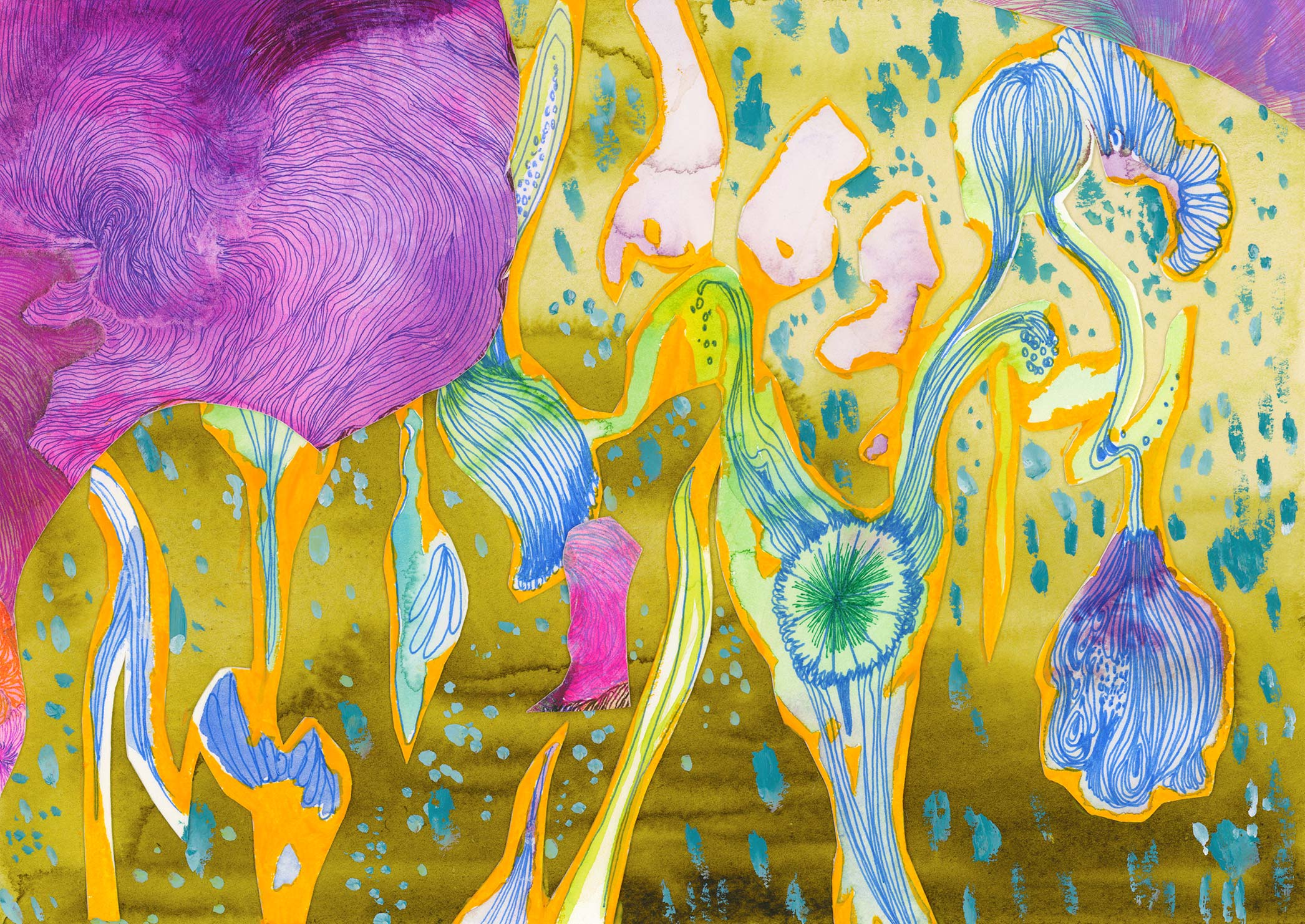 Unframed Original Art - Mystical Forest - [SS23DW002] 2023, Paper collage, Pen & Watercolor
