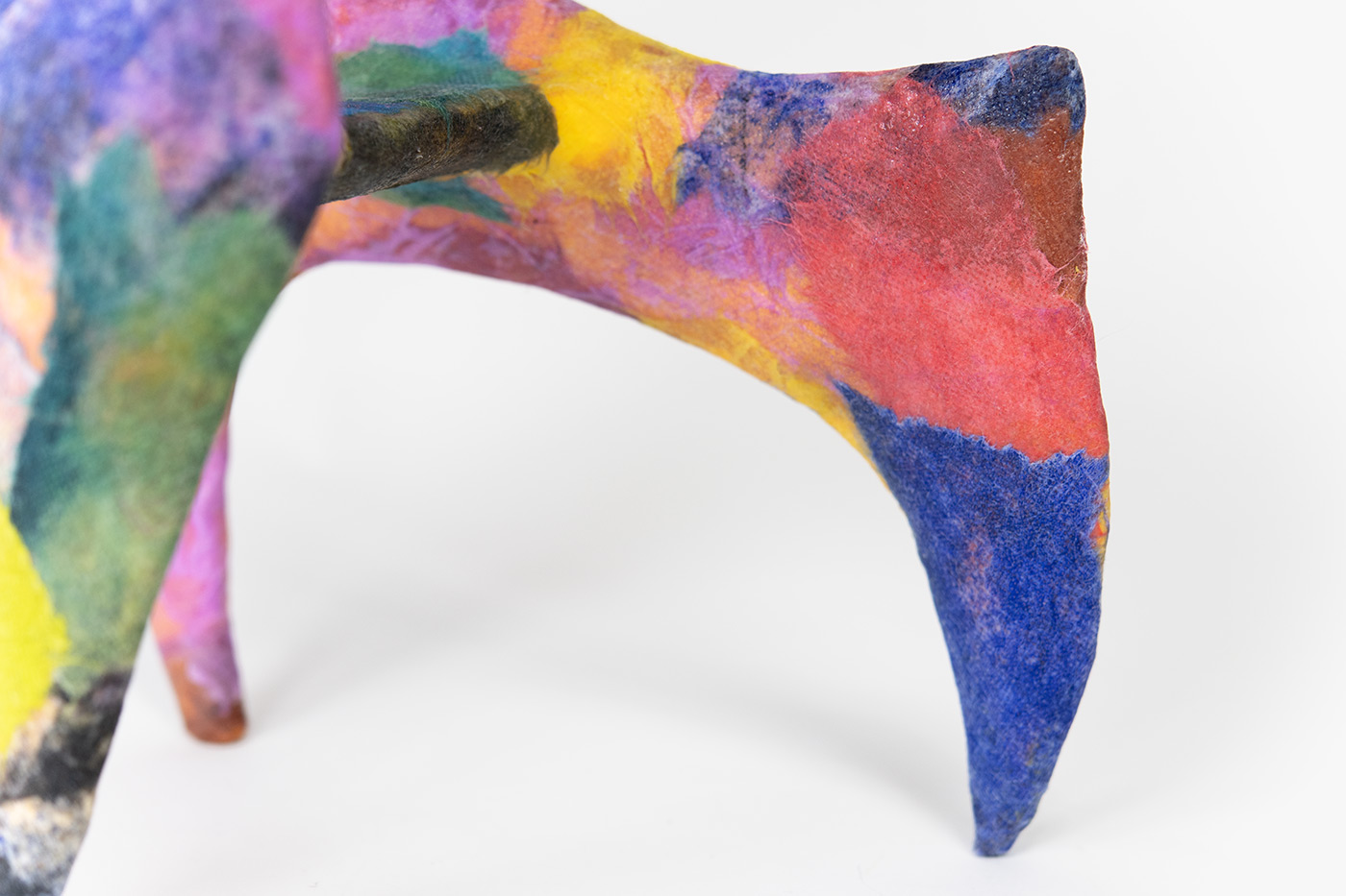The Animal on the Rock [#SS25SC007] 2025, Oil, Glue, and Non-Woven Fabrics on Stone Powder Clay, 15.2 x 12.4 x 7 in. / 38.5 x 31.5 x 17.5 cm