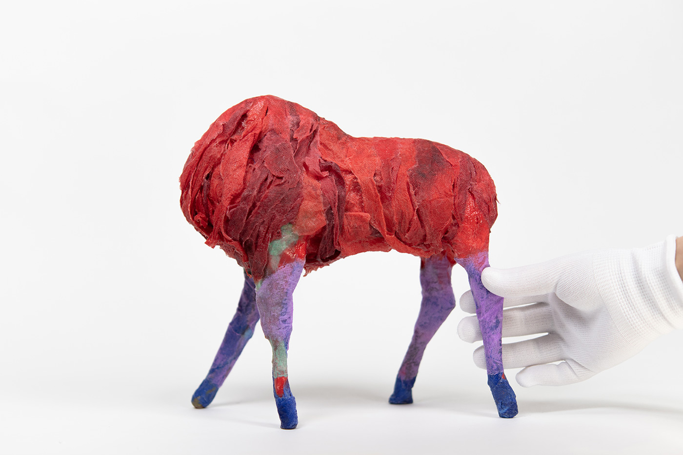 Oil, Varnish, and Non-Woven Fabrics on Stone Powder Clay, 9.05 x 8.6 x 4.3 in. / 23 x 22 x 11 cm