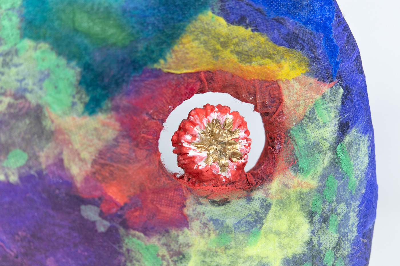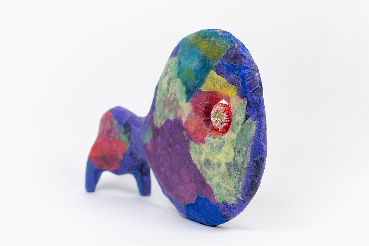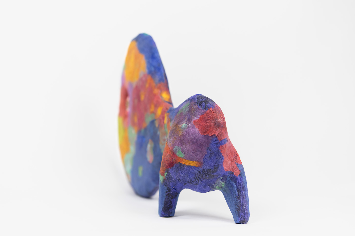 The Animal Basking in the Moonlight [#SS25SC004] 2025, Oil, Glue, Non-Woven Fabrics and Resin on Stone Powder Clay, 10.25 x 17.1 x 3.7 in. / 26 x 43.5 x 9.5 cm