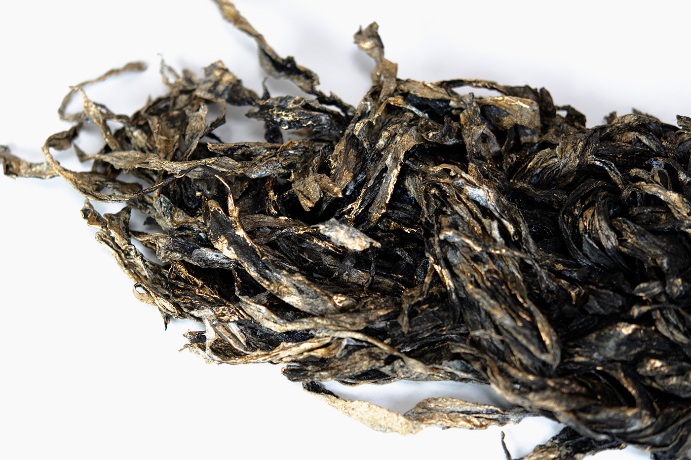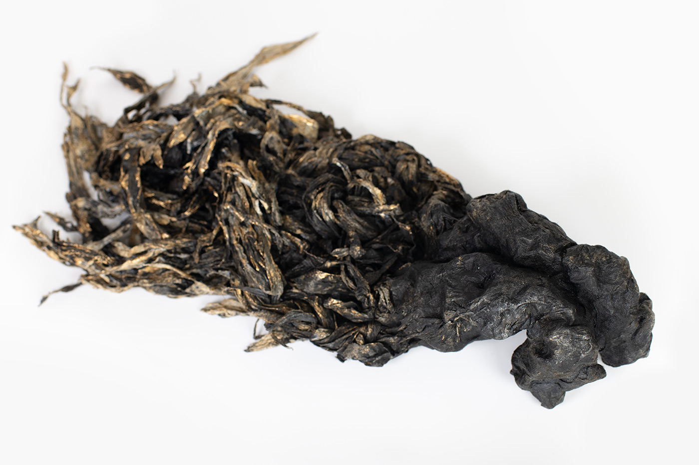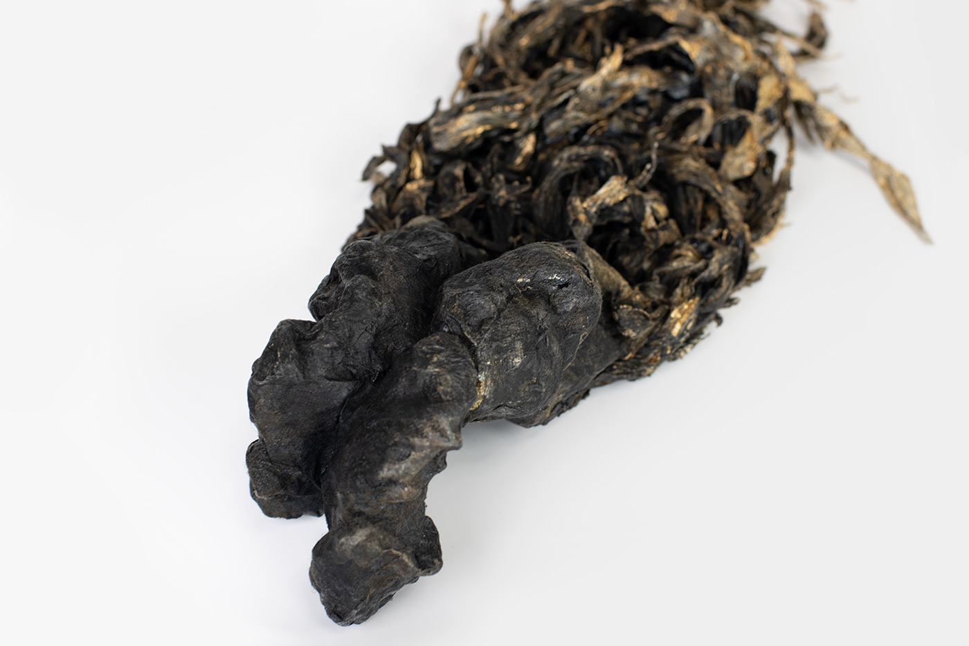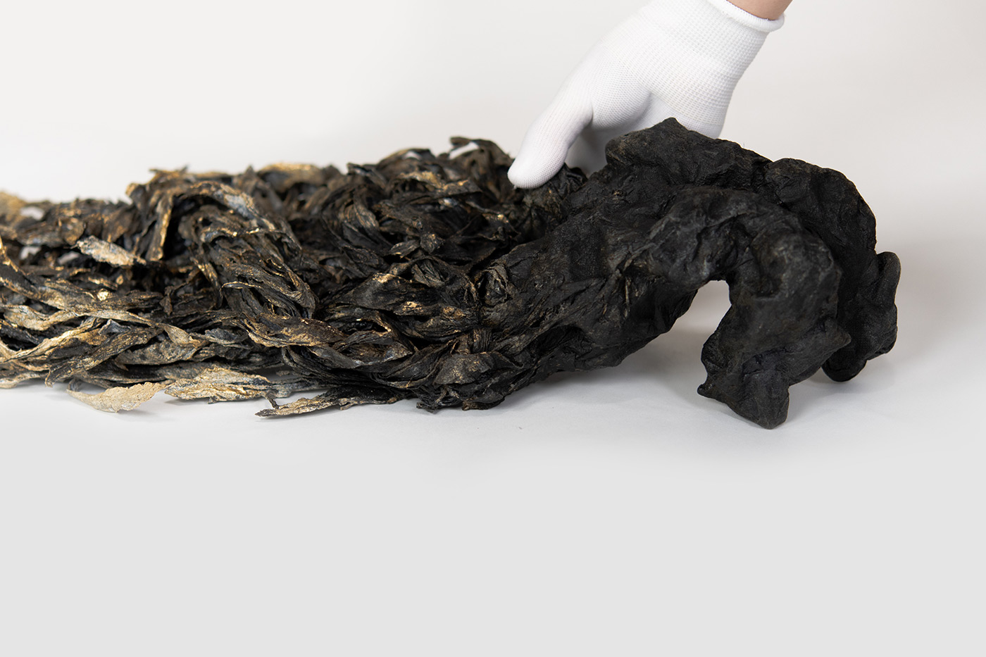 Oil, Glue, Varnish, and Non-Woven Fabrics on Stone Powder Clay, approx. 4.5 x 24 x 8.3 in. / approx. 11.5 x 60 x 21 cm